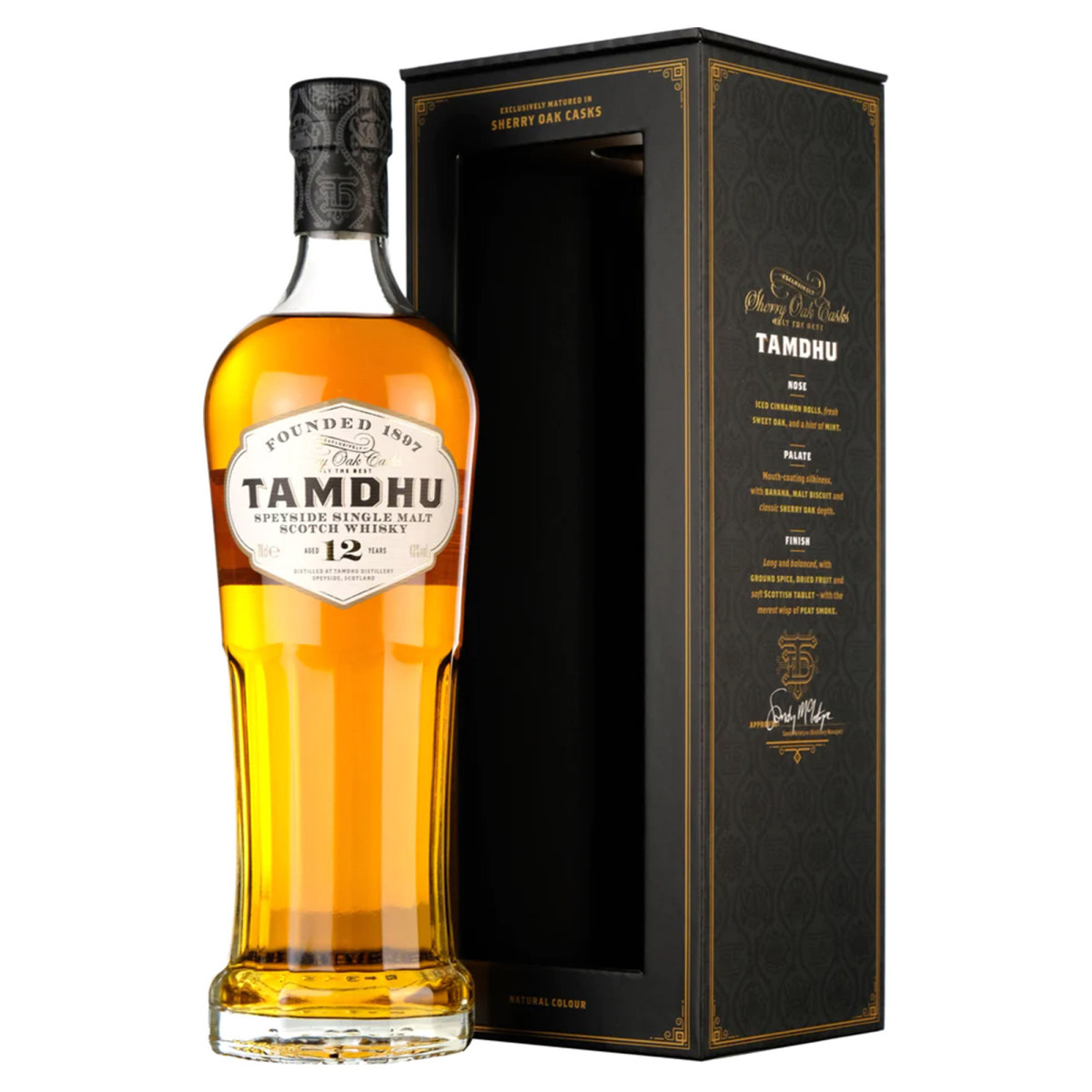 Il colore naturalmente intenso è conferito dall’invecchiamento esclusivo in botti di Sherry spagnolo. Un whisky dolce e nitido, con un sapore piccante e consistente.
